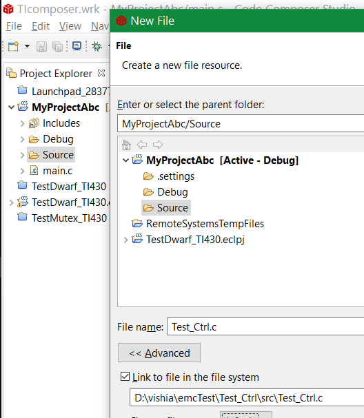 Diese Möglichkeit kann man nun nutzen, um Files einzurichten die im lokalen Workind-Directory stehen, ohne wie im Vorkapitel beschrieben über die Advances-Möglichkeit zu gehen und die Links im Eclipse zu organisieren.