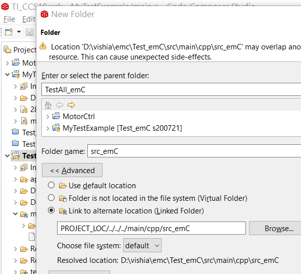 Das erscheint einfach, scheinbar so gewollt von der Eclipse-IDE und dem Arbeitsstil entsprechend. Das "Advanced"-Button bei Anlage oder Einbeziehen von Files wird nicht genutzt.