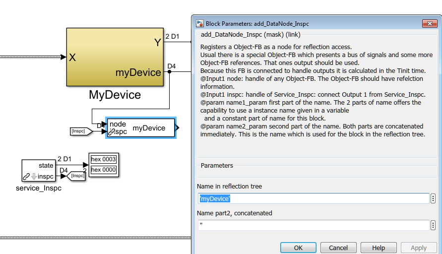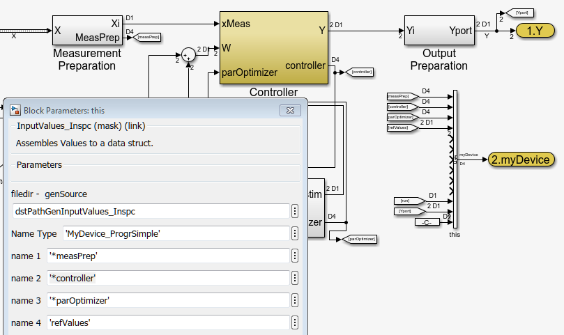 InitDataStruct_Inspc: This FBlock gets input values only for initialization (Tinit step or sample time) especially for handles (references).